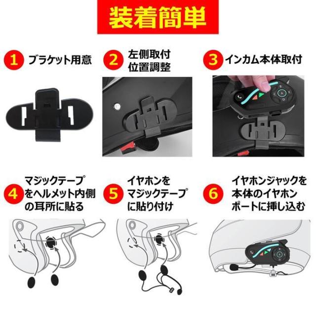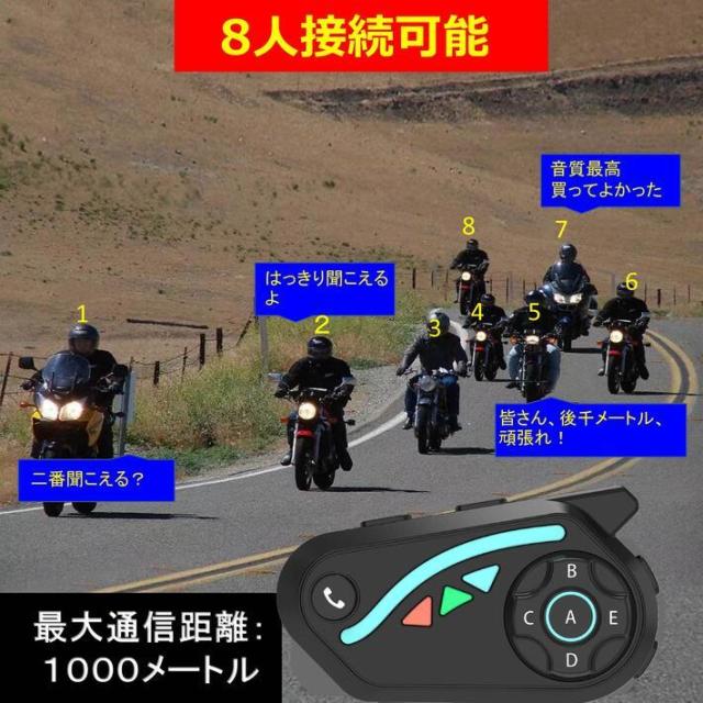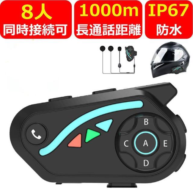 バイク インカム 最大8人接続 最大通信距離1000m Bluetooth5.2 連続使用30時間 着信自動応答 ヘッドセット インターコム 高音質 防水 バイク無線機 ヘルメット