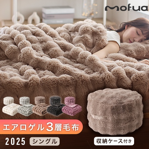 毛布 ふんわりもこもこ あったか うっとりなめらか ふんわりもこもこ毛布 抗菌 制電 収納ケース付 シングル 毛布収納 毛布 収納 クッション ふわふわ ポコポコ 厚手 洗える 2枚合わせ エアロゲル 暖かい とろとろ mofua モフア