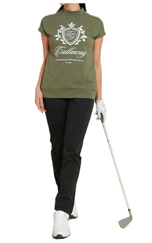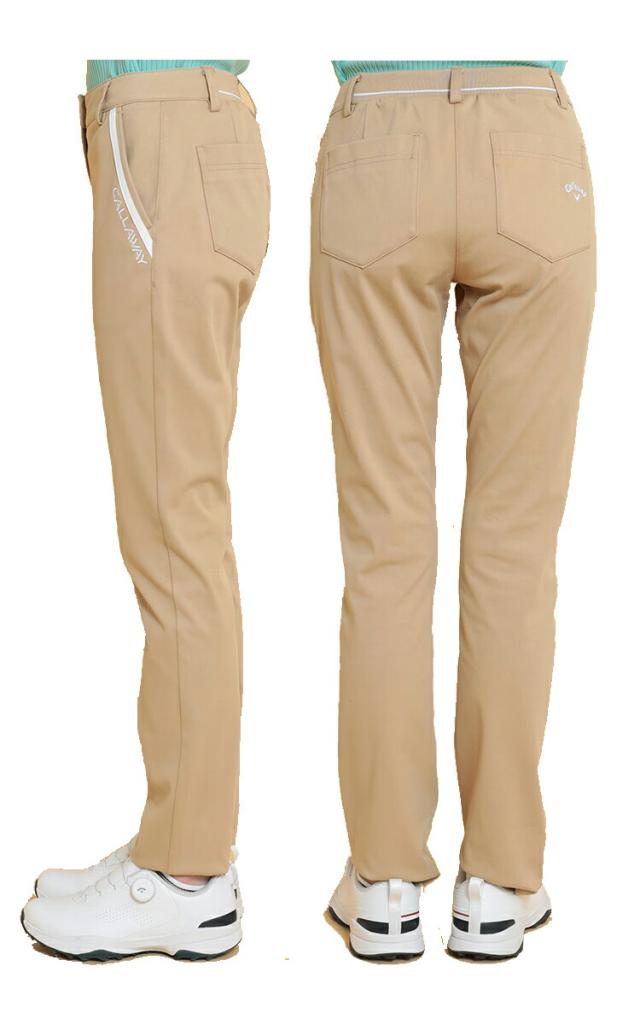 ウエストはゴム仕様でプレー中の動きを妨げにくいデザインです。程よい肉感で、透け感や下着のラインも気にならない、キャロウェイの定番的パンツです。