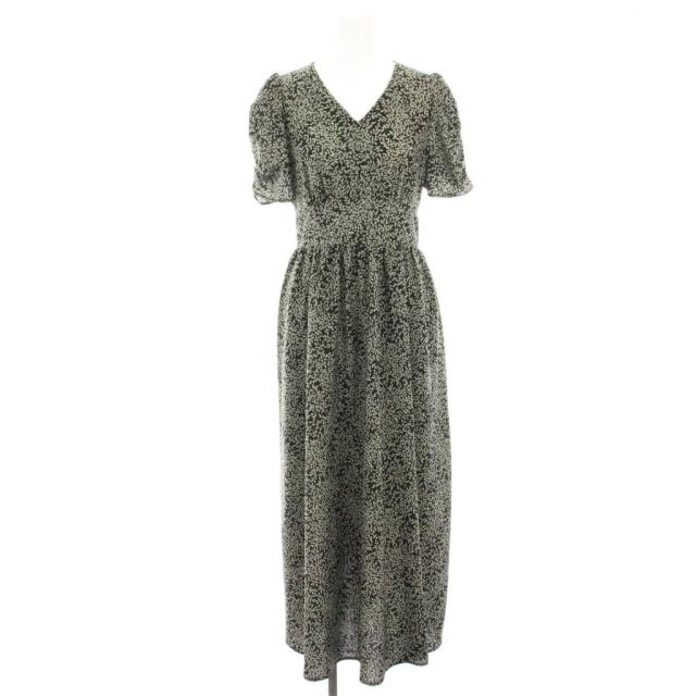 【中古】 N.ナチュラルビューティーベーシック プリントパワーショルダーワンピース マキシ ロング 半袖 総柄 M