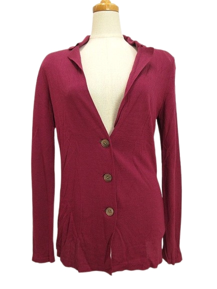 【中古】アクアスキュータム AQUASCUTUM ニット カーディガン ジャケット 8 絹 シルク カシミヤ ワインレッド 赤紫