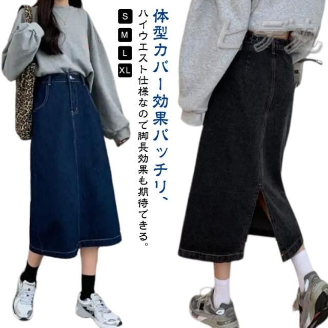 ボトムス 可愛い スカート スリット デニムスカート 膝下 ひざ下 バックスリット レトロ ミモレ丈 レディース きれいめ 無地 カジュアル シンプル ストリート アメカジ デニムスカート デイリ 春 夏 秋 韓国ファッション