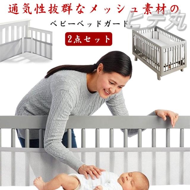 ケガ防止 メッシュ サイドガード 通気 ベッドバンパー 2点セット 空気循環可能なベッドガード ベビーベッドガード 洗濯可能 ベビーベッド用 転落防止 ベビーケア用品 赤ちゃん 安全性 収納便利 布団落下防止 出産祝い 新生児 夏用 ギフト プレゼント
