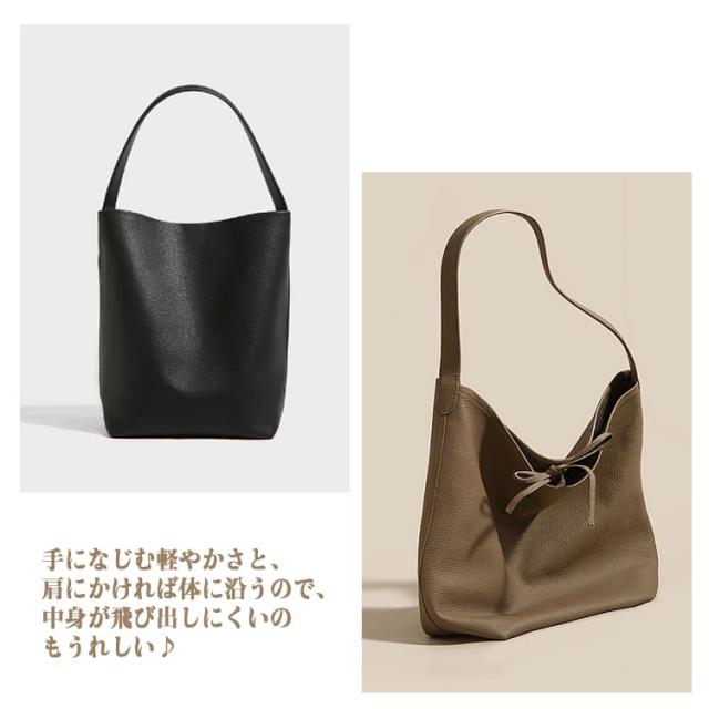 | Tシャツからジャケットまで、どんなテイストとも相性抜群! 急な予定にもパッとスタイリングが決まります♪ 1つは持っておきたい頼れるバッグです。 肩にかければ両手が空くので、荷物の多い日や子育てママにもおすすめ。 柔らかく上質な牛革を使用。 手になじむ軽やかさと、肩にかければ体に沿うので、中身が飛び出しにくいのもうれしい♪ | |