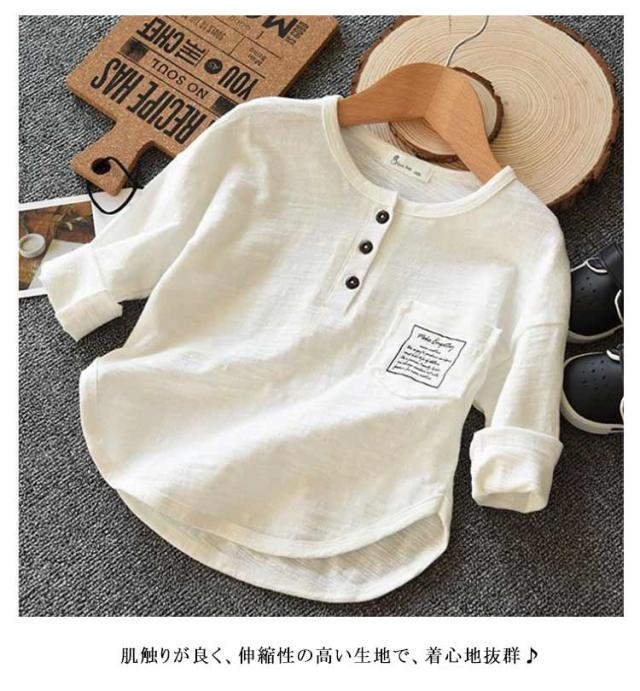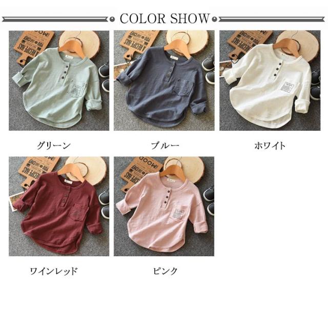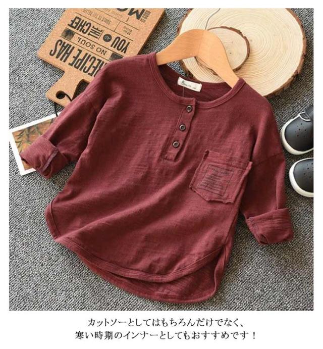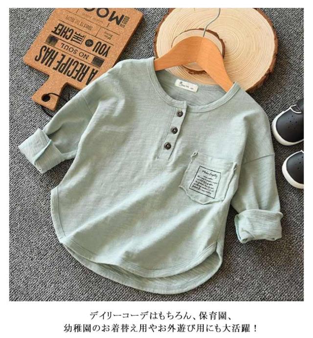 | シンプルなデザインのキッズカットソー! デイリーコーデはもちろん、保育園、幼稚園のお着替え用やお外遊び用にも大活躍! シンプルデザインなので、どんなボトムスとも相性が良く、オールシーズンお使いいただけます! 肌触りが良く、伸縮性の高い生地で、着心地抜群♪ カットソーとしてはもちろんだけでなく、寒い時期のインナーとしてもおすすめです! | |