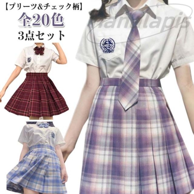 可愛い 全20色!セーラー服 全20色!セーラー服 JK制服 スクールシャツ レディース 蝶結び 半袖 女子制服 3点セット コスプレ 高校生 上下セット 学生服 学園祭 衣装 チェックスカート 文化祭 大きいサイズ セーラー服 コスチューム衣装