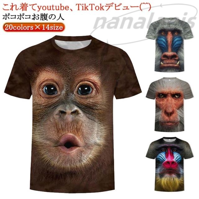オラウータン 男性 半袖 130cm tシャツ ユニーク tシャツ 半袖 動物柄 メンズ おもしろ 110 キッズ 子ども ゴリラ 120 チンパンジー 速乾 吸汗 Tシャツ 猿 さる サル お猿さん うほうほ かわいい チンパンジー ブーブー 動物Tシャツ