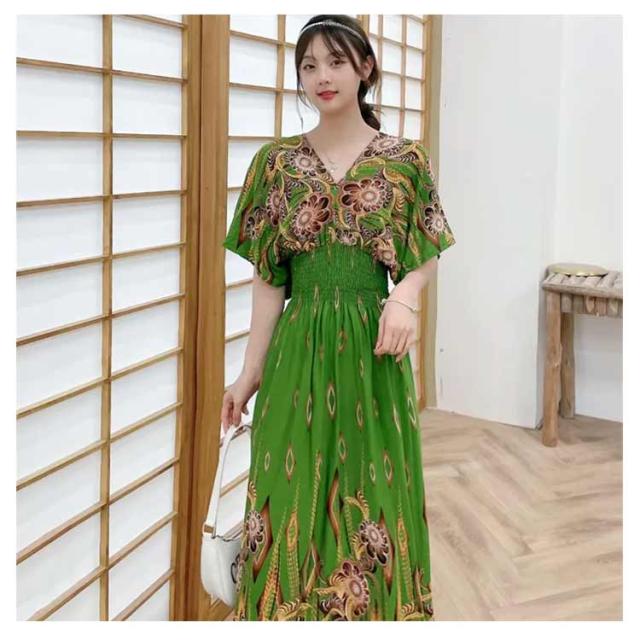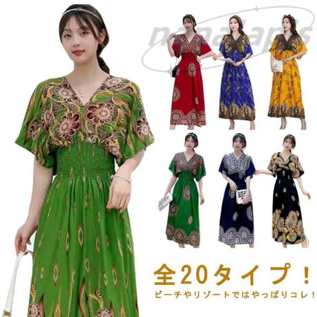 柔らかい エキゾチック 総柄 リゾート 花柄 リゾートワンピース おしゃれ ワンピース 半袖 ロング丈 ロング Vネック マキシ丈 夏 アジアン マキシワンピース 個性的 海 リゾートワンピース きれいめ エスニック 花柄 沖縄 海外旅行 体型カバー ゆったり 着?せ ギフト