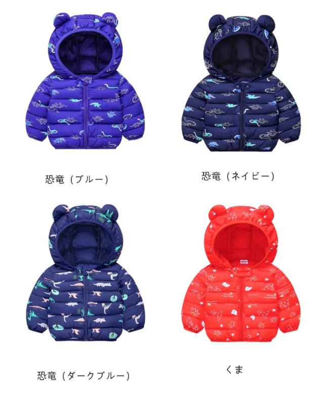 耳付きフード シンプル 中綿 ジップアップジャケット ジャケット フード付き キッズ アウター 長袖 コート 子供用 ダウンジャケット 上着 防寒 ブルゾン 秋 ダウン風ジャケット 寒さ対策 暖かい あったかい 冬 冬服 お出かけ ダウン風ジャケット 総柄 無地 カジュアル