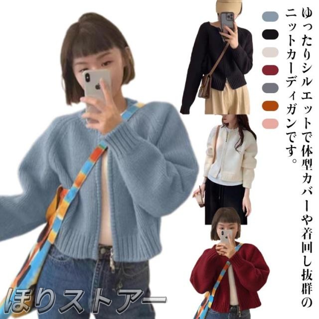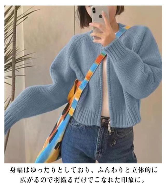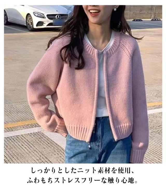 ショート丈 ジップアップ ニット ブルゾン カーディガン ニット ブルゾン 長袖 カーディガン 羽織り ニット ニットカーディガン クルーネック レディース ライトアウター ジッパー 羽織もの 春秋 無地 アウター コーデ 前開き