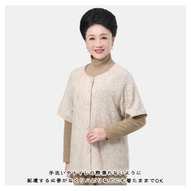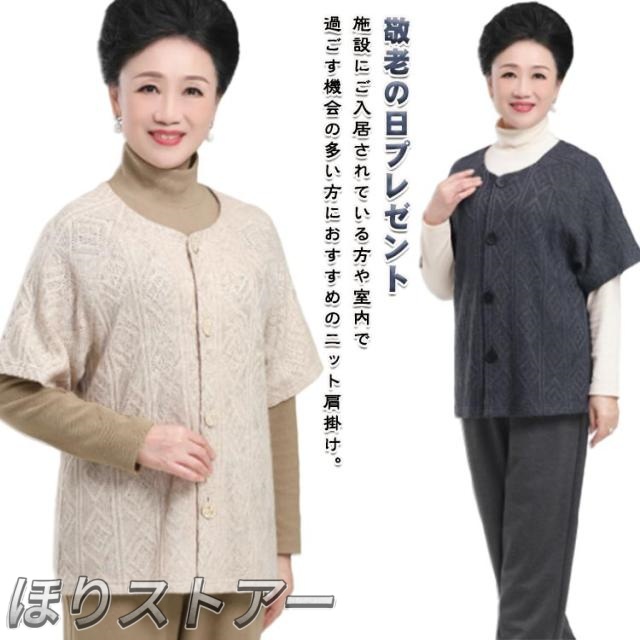ニットカーディガン レディース 80代 シニア ニット肩当て ニット 羽織 肩当て 半袖 ニット ケーブル編み シニアファッション 70代 90代 アクリル 高齢者 敬老の日 プレゼント 実用的 春秋冬 軽量 シニアファッション 祖母