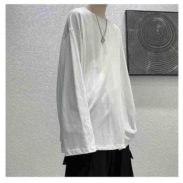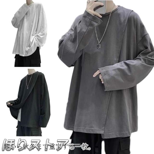 ロングtシャツ 薄手 長袖 春秋服 ビッグT 無地 カットソー ロングtシャツ インナー ビッグシルエット メンズ Tシャツ ゆったり おしゃれ アシンメトリー デザイン感