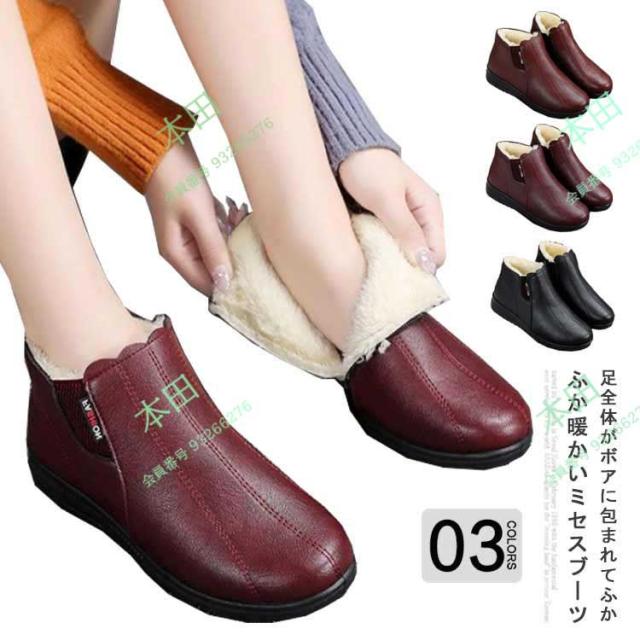 婦人靴 ショートブーツ 裏ボア あったか ミセス 母 裏起毛 秋冬 ブーツ シューズ ふかふか 歩きやすい PUレザー ローヒール フラット ムートン