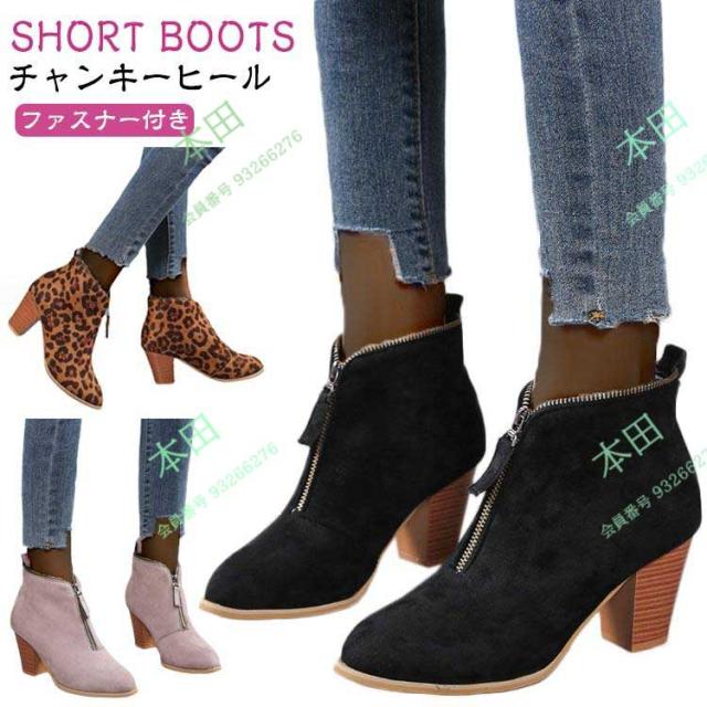 ファスナー付き ヒョウ柄 レディース レオパード 歩きやすい ショートブーツ ポインテッドトゥ ブーティー ブーツ ミドルヒール ショート丈 ショート