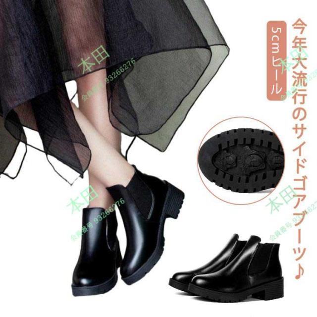 レディース 歩きやすい ブーツ ショートブーツ シューズ サイドゴア 春秋 冬 4.5cmヒール チャンキーヒール ブーツ 幅広 シンプル 太ヒール