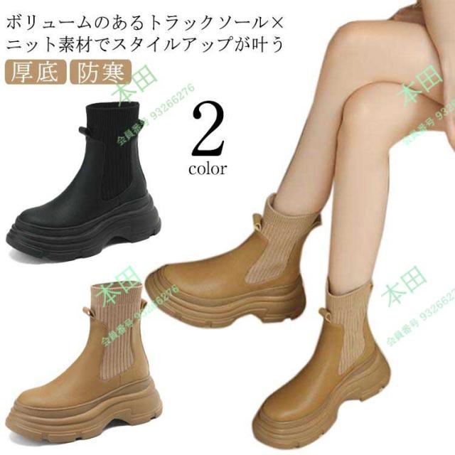 ショートブーツ 厚底ブーツ ブーツ レディース ソックスブーツ ソックスブーツ レディース アンクルブーツ ニットブーツ 厚底 ボリュームソール ニッ