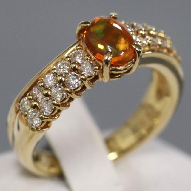 K18ファイヤーオパールダイヤモンドリング 0.45 0.47 5.5g #11 イエローゴールド