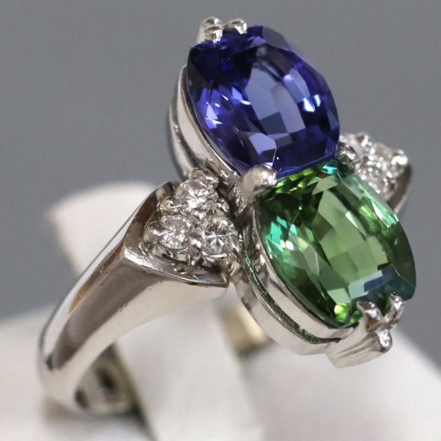 Pt900トルマリンタンザナイトダイヤモンドリングの中古品です。