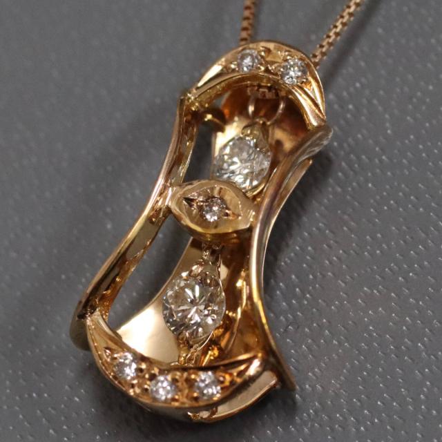 K18PGダイヤモンドネックレス D0.23 3.1g AJ付44cm 鑑別書 ピンクゴールド