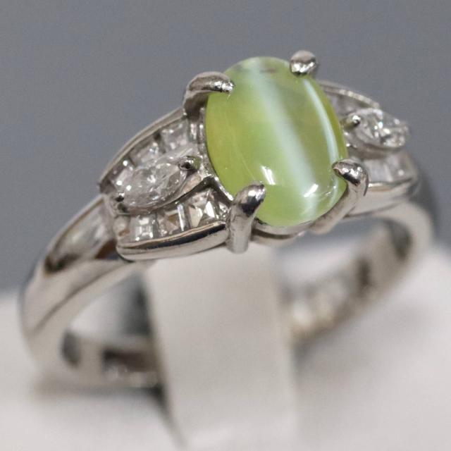 Pt900クリソベリルキャッツアイダイヤモンドリングの中古品です。