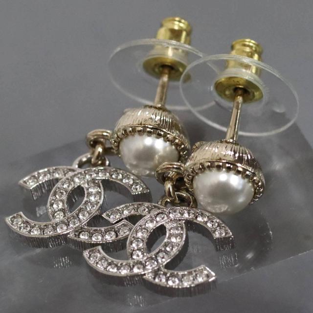 シャネルのココマーク フェイクパール ラインストーン ピアスの中古品です。