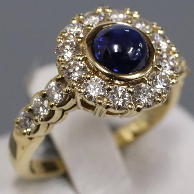 750サファイアダイヤモンドリング S1.028 D0.80 4.9g #8-8.5 ソーティング イエローゴールド ブルーサファイア