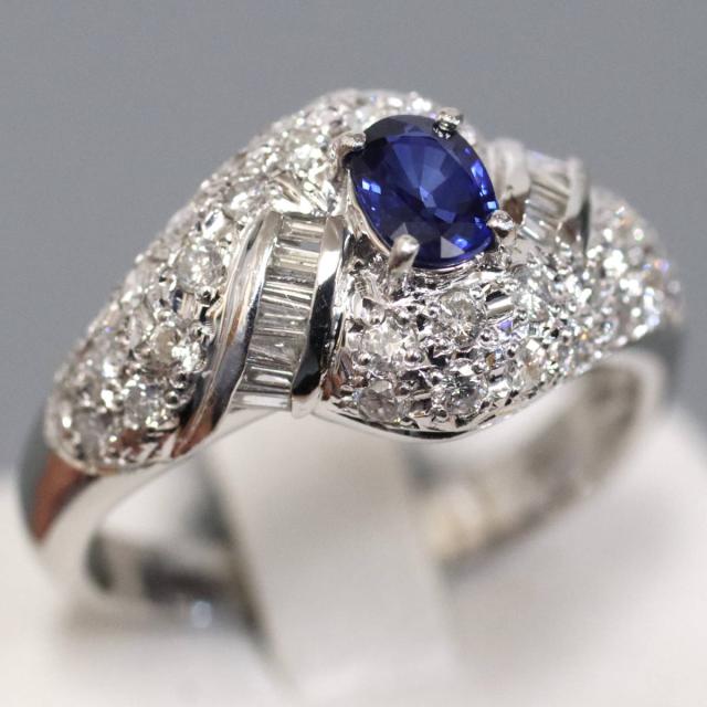 Pt900ブルーサファイアダイヤモンドリングの中古品です。