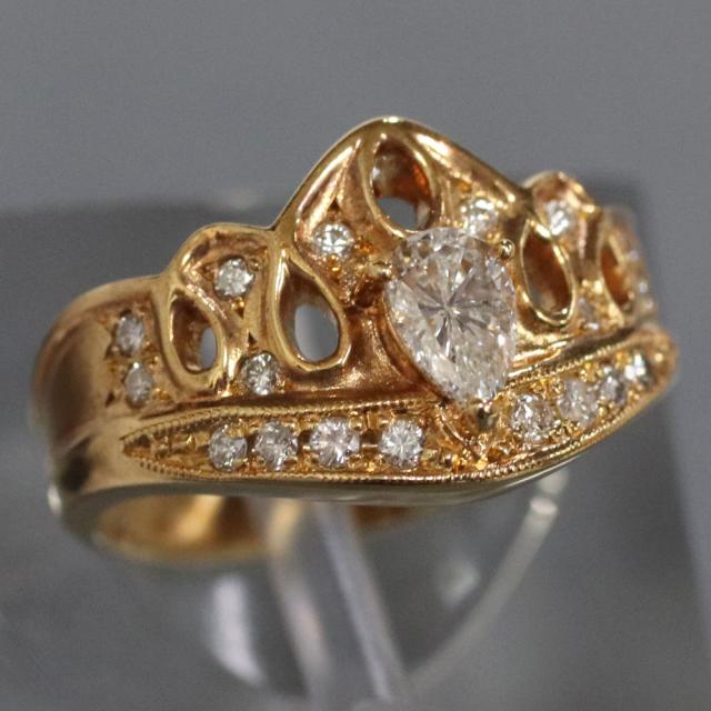 K18ダイヤモンドリング D0.57 6.8g #10.5 イエローゴールド ティアラ 王冠