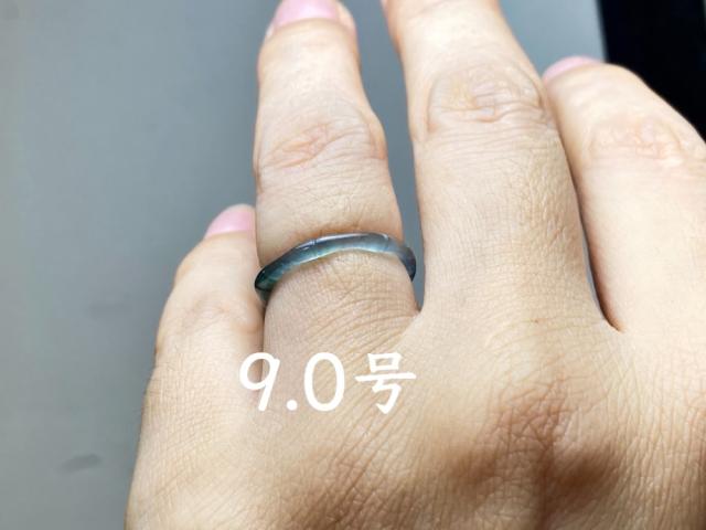 L13-220 細身 ピンキーリング 高氷種 竹節 リング 高級感 9.0号 グアテマラ産 A貨 本翡翠 くりぬき 黒翡翠