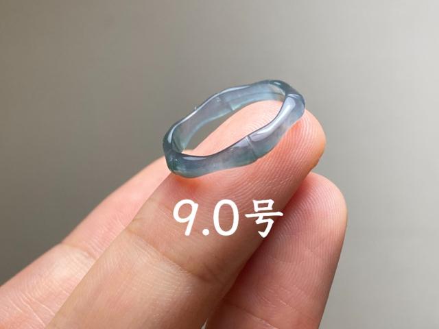 L13-221 ピンキーリング 氷種 竹節 リング 高級感 煙灰色 9.0号 グアテマラ産 A貨 本翡翠 くりぬき 黒翡翠