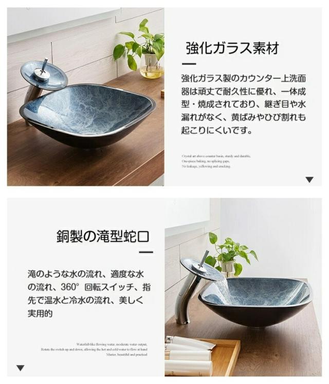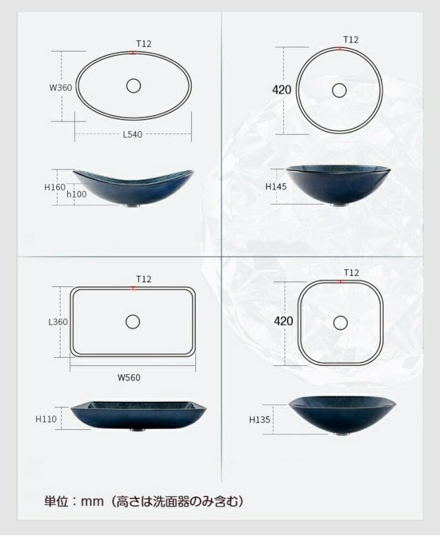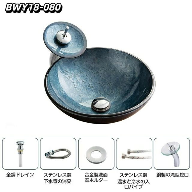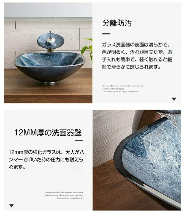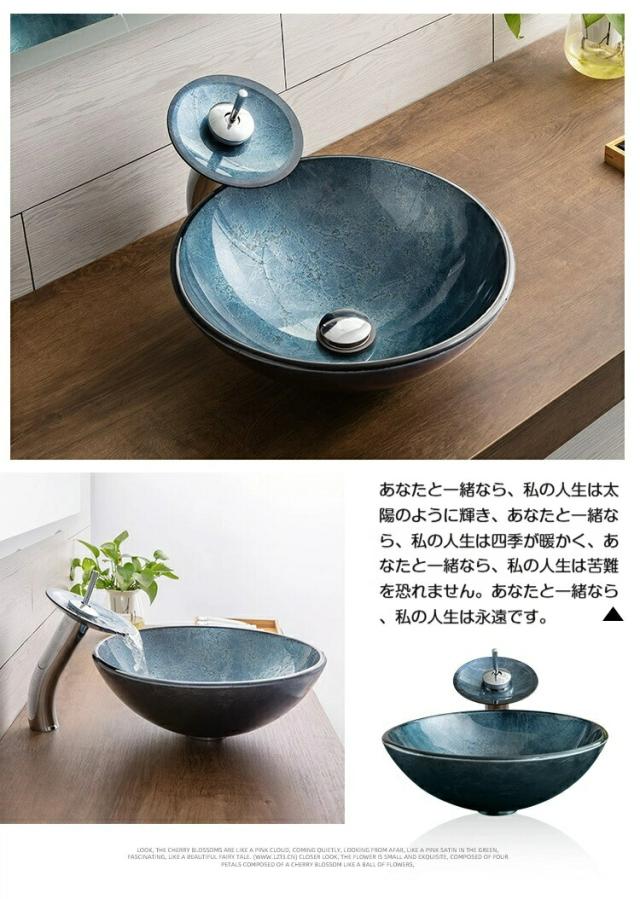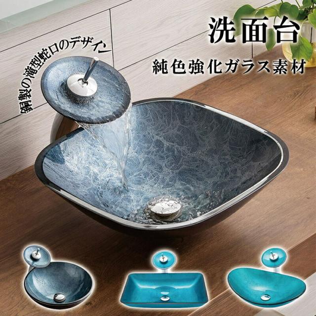 純色 強化ガラス 洗面器 台上式 アート洗面盆 シンプルモダン バスルーム用 洗面台