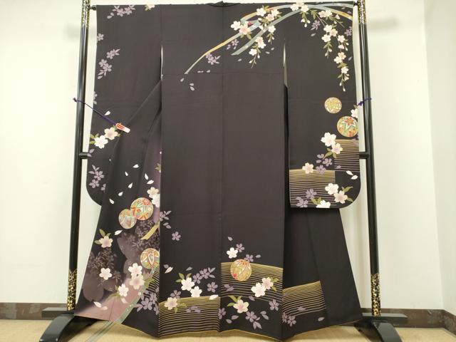 平和屋着物●豪華振袖 手毬花文 暈し染め 黒地 金彩 京都きもの友禅扱い 正絹 逸品 DAAR0298yyy