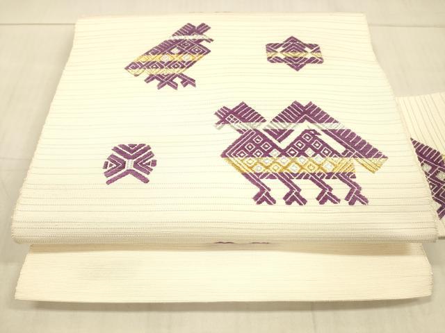 平和屋着物●京の名門 じゅらく謹製 帝王紫 八寸名古屋帯 紬地 動物文 金銀糸 正絹 逸品 DAAW4295cm