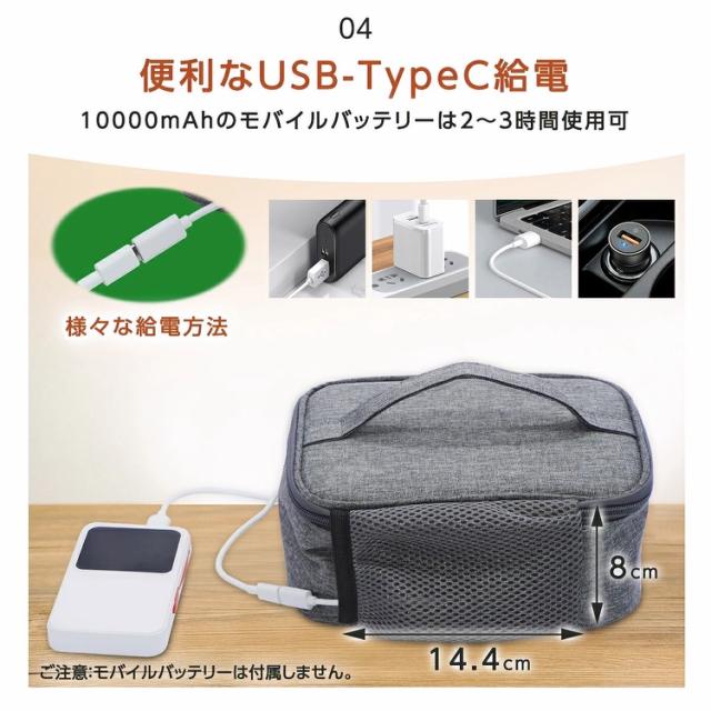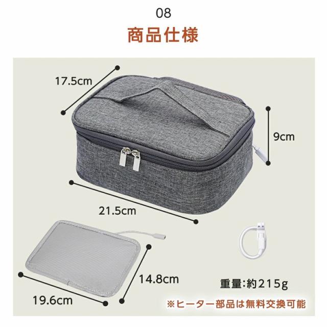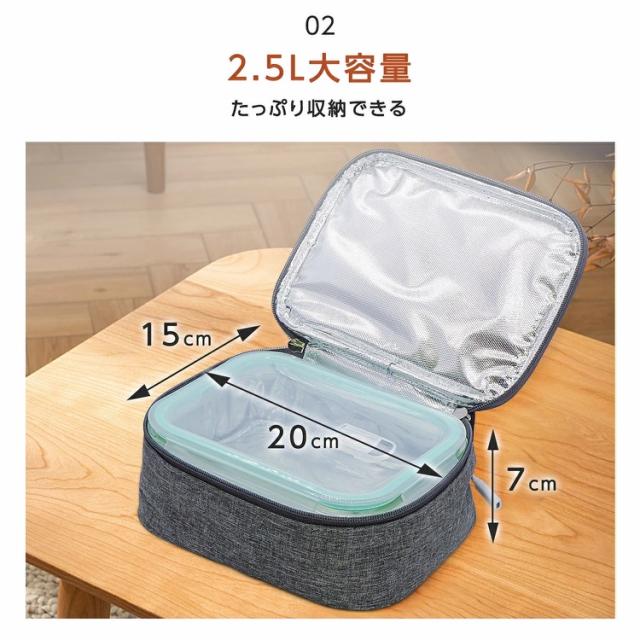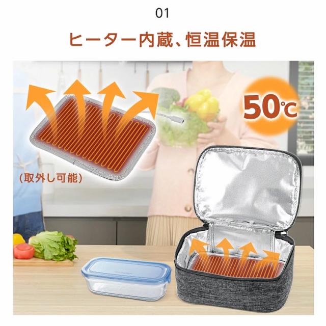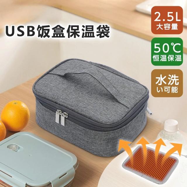 お弁当袋 電熱 保温 弁当バッグ USB給電 ヒーター内蔵 50度まで加熱 保温保冷 ランチバッグ ヒーター取外し可能 丸洗い・水洗い可能 大容量 2.5L 撥水加工 お弁当入れ 通勤 通学