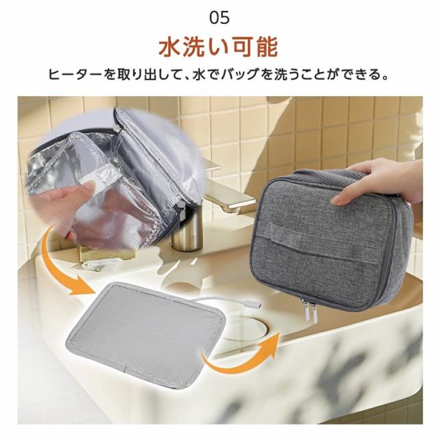 内臓ヒーターを取り外して、バッグを水で丸洗いことができます。常に清潔を保ち、ご健康を守ります。ヒーターは無料交換可能です。