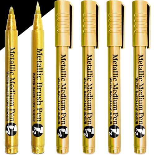 金色 ペン ゴールドマーカーペン 2種類のペン先 6本セット 耐水インク 0.5~5mm線幅 水性アクリルペン 金筆ペン 名前ペン タイヤレタ