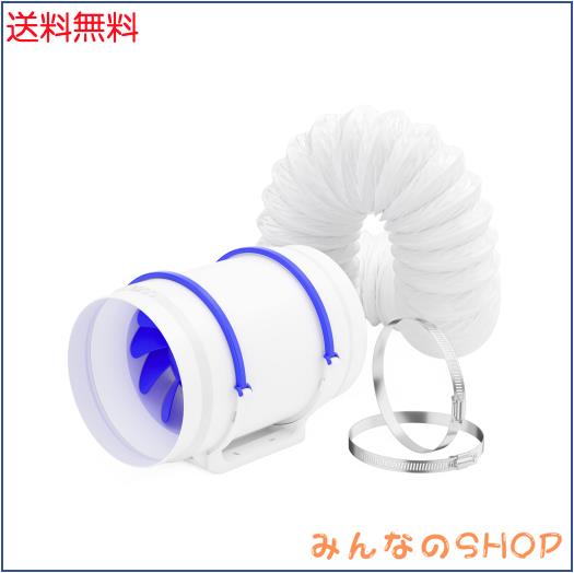 Hon&Guan ダクトファン セット 200mm ダクトホース付+ホースバンド付き 強力 ダクト用換気扇 塗装ブース用 中間取付 産業用排風機 (GF-2