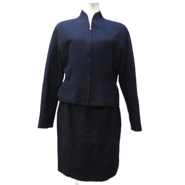 【中古】ミスクロエ ヴィンテージ スカートスーツ 上下 ノーカラージップジャケット 台形スカート 紺 42 約XL