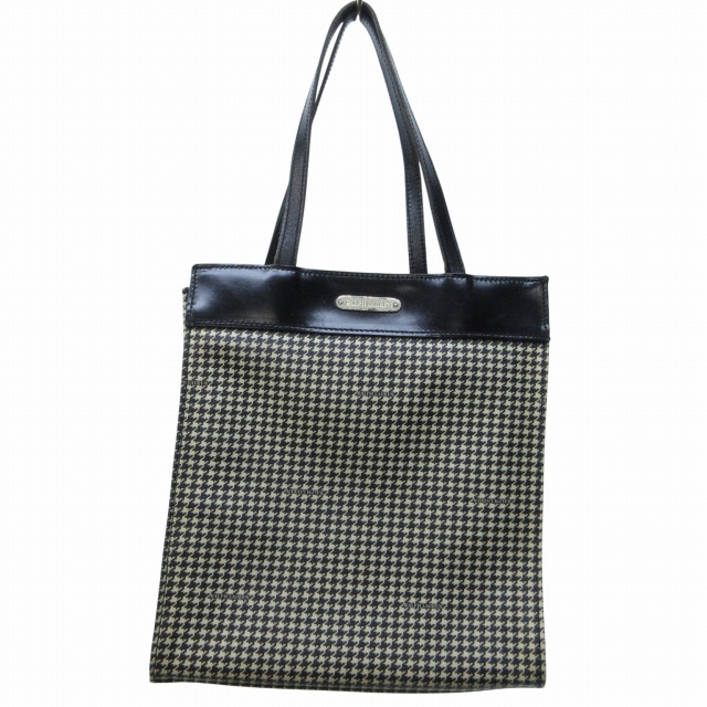 【中古】ラルフローレン RALPH LAUREN トートバッグ ハンドバッグ ロゴプレート 千鳥格子柄 レザー 黒 白