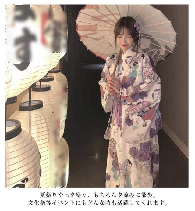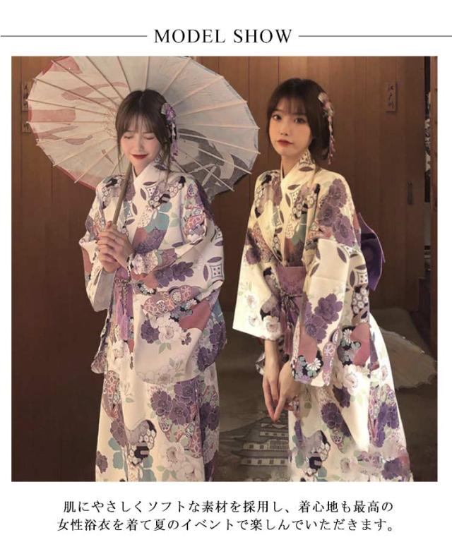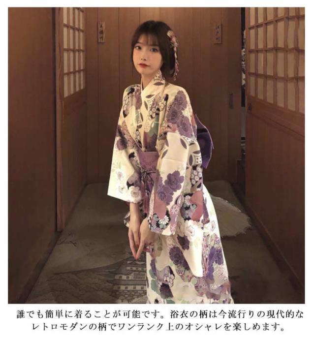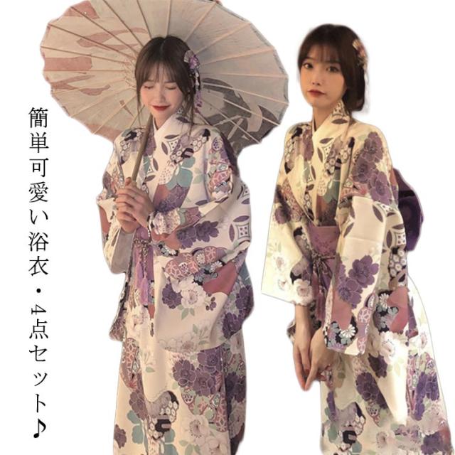 ゆかた 花柄 着物 4点セット 浴衣 和装 可愛い 紫 レディース セット ユカタ お祭り 花火大会 浴衣 帯 セット 浪漫 大人 綺麗 薄手 夏 高校生 大学生 浴衣 レトロ 洗える