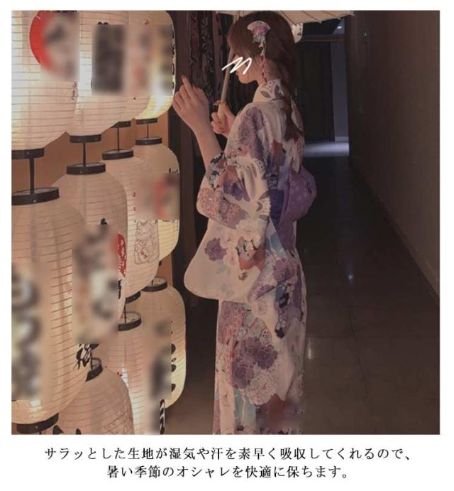 | 簡単可愛い浴衣・4点セット♪ 肌にやさしくソフトな素材を採用し、着心地も最高の女性浴衣を着て夏のイベントで楽しんでいただきます。 サラッとした生地が湿気や汗を素早く吸収してくれるので、暑い季節のオシャレを快適に保ちます。 誰でも簡単に着ることが可能です。浴衣の柄は今流行りの現代的なレトロモダンの柄でワンランク上のオシャレを楽しめます。 夏祭りや七夕祭り、もちろん夕涼みに散歩、文化祭等イベントにもどんな時も活躍してくれます。 | |