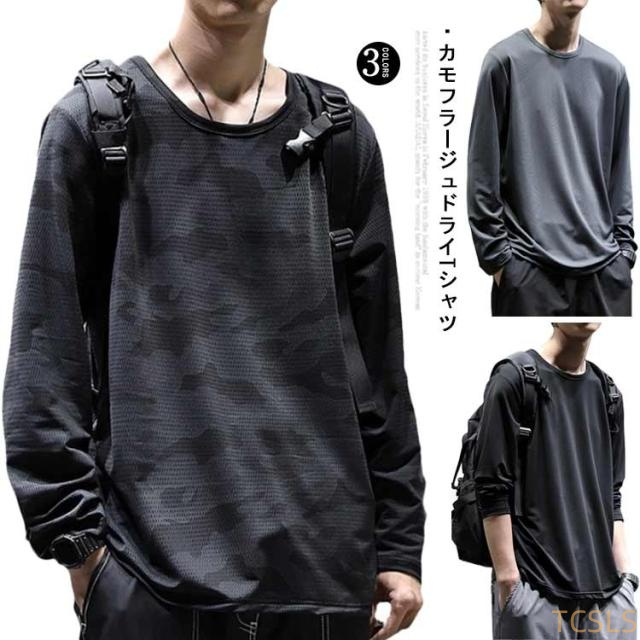 涼しい Tシャツ メンズ 長袖 迷彩柄 ドライ メッシュ ロングTシャツ 大きいサイズ ストレッチ 吸汗速乾 トップス 作業着 かっこいい おしゃれ オールシーズン 年間対応 迷彩 カモフラ キャンプ スポーツ 春 夏
