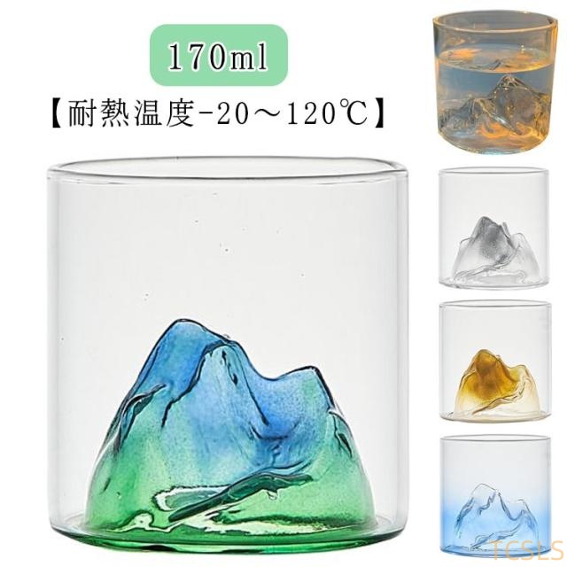 ガラス 小さめ 富士山 耐熱 コップ グラス ガラスコップ 酒器 お酒 ガラスカップ ウィスキー ガラス 透明 タンブラー クリア 食器 北欧 日本酒 麦茶 冷茶 ドリング 和風 170ml おしゃれ モダン ゴールド ブルー 氷山 グリーン