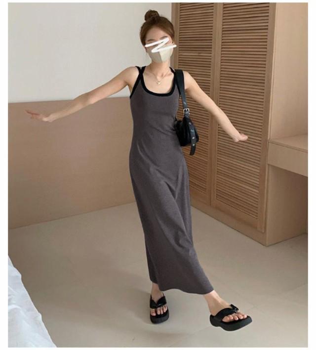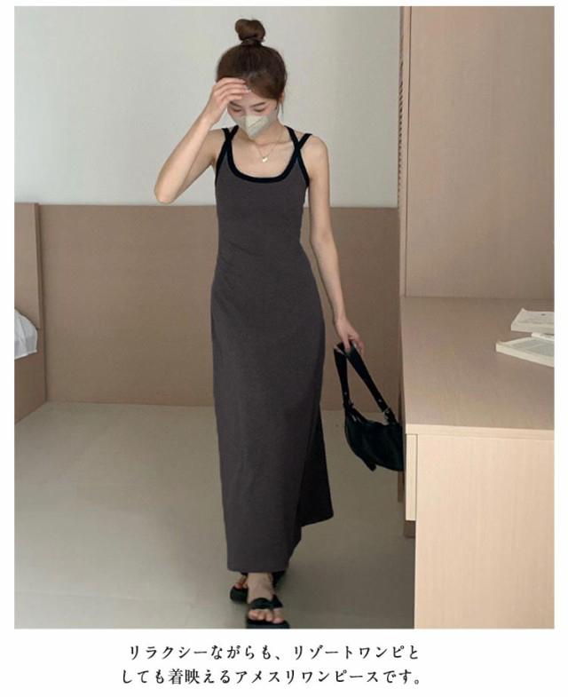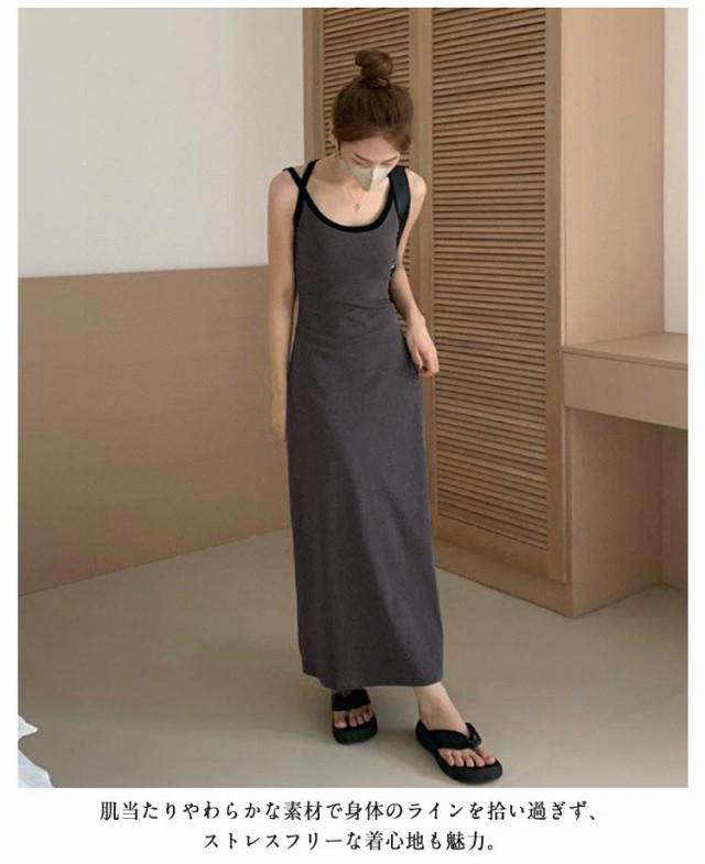 | カップ付きでインナー選びに悩まない! 「後ろ姿もお洒落」バッククロス&アメスリワンピース トレンドのアメスリデザインを施した、モードなロングワンピース。 二重の華奢なストラッブが後ろ姿までお酒落に見せてくれます。 すっきりとしたAラインで、クビレを作り、ほっそり細見え♪ 肌当たりやわらかな素材で身体のラインを拾い過ぎず、ストレスフリーな着心地も魅力。 ヘルシーにサンダルやスニーカーとの組み合わせも高相性◎ 一枚ではもちろん、シャツやカーデを羽織ったスタイリングがおすすめです。 リラクシーながらも、リゾートワンピとしても着映えるアメスリワンピースです。 | |