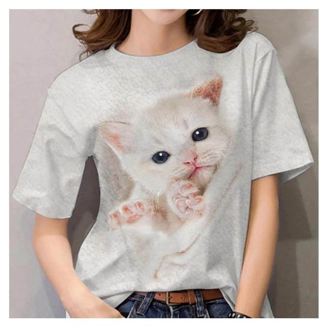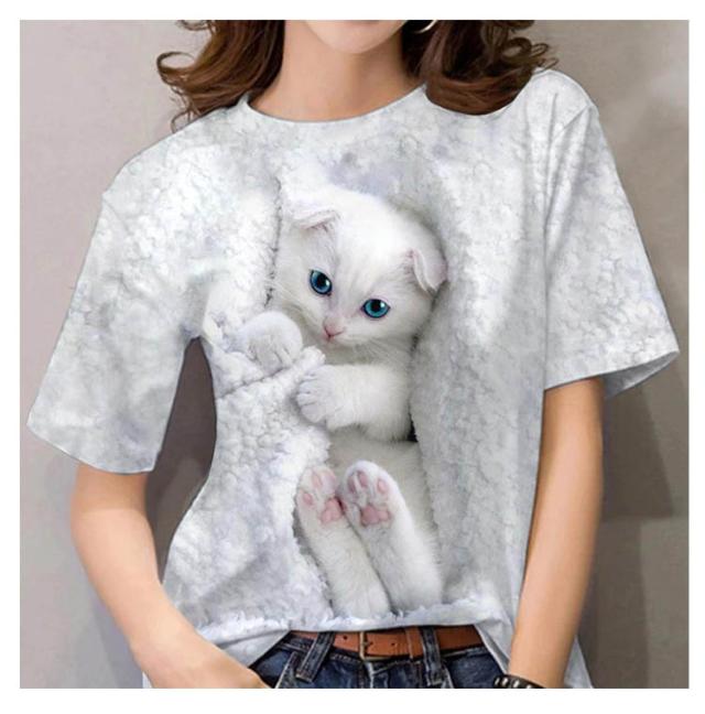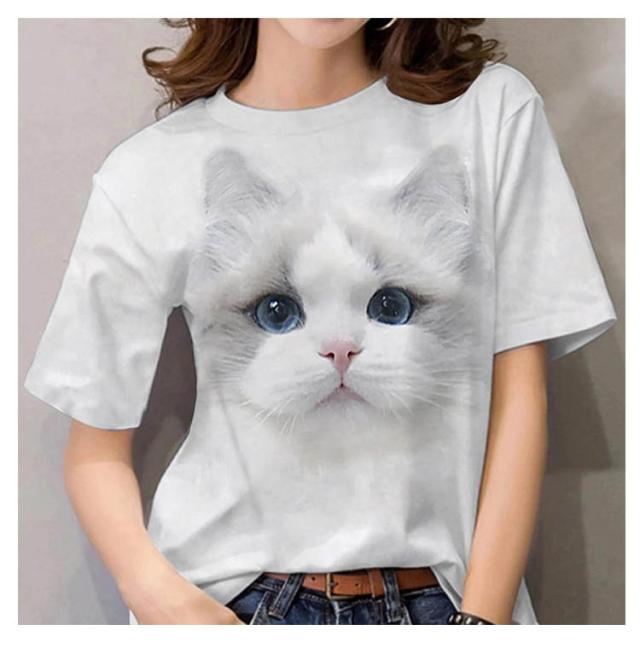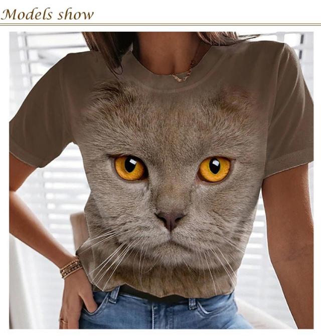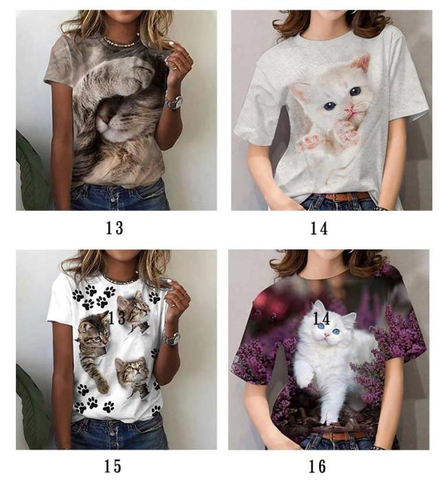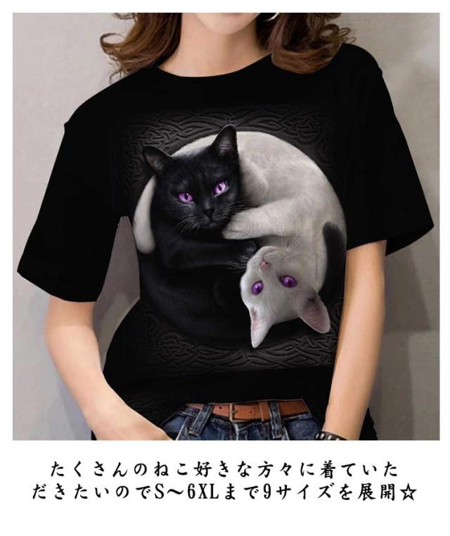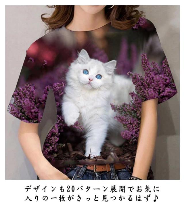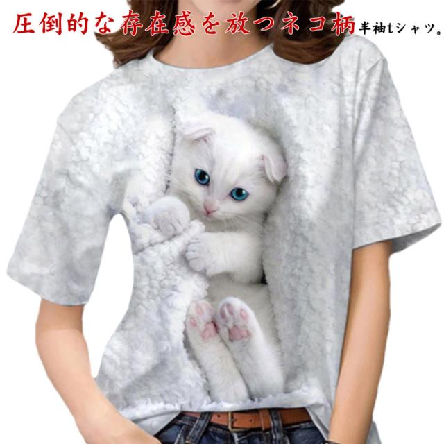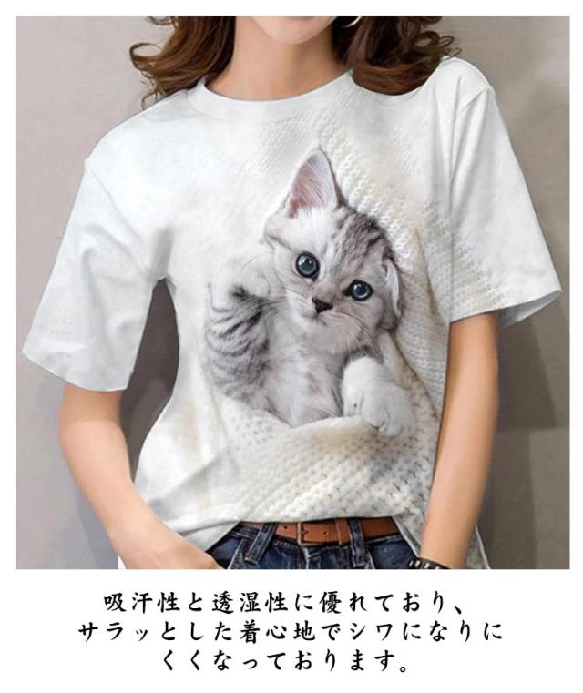 3D 猫プリントtシャツ 3D柄 カットソー レディース 半袖 3D Tシャツ おもしろ 面白 猫 tシャツ ねこ キャット にゃんこ ラウンドネック かわいい 夏 大きサイズ