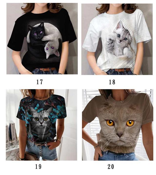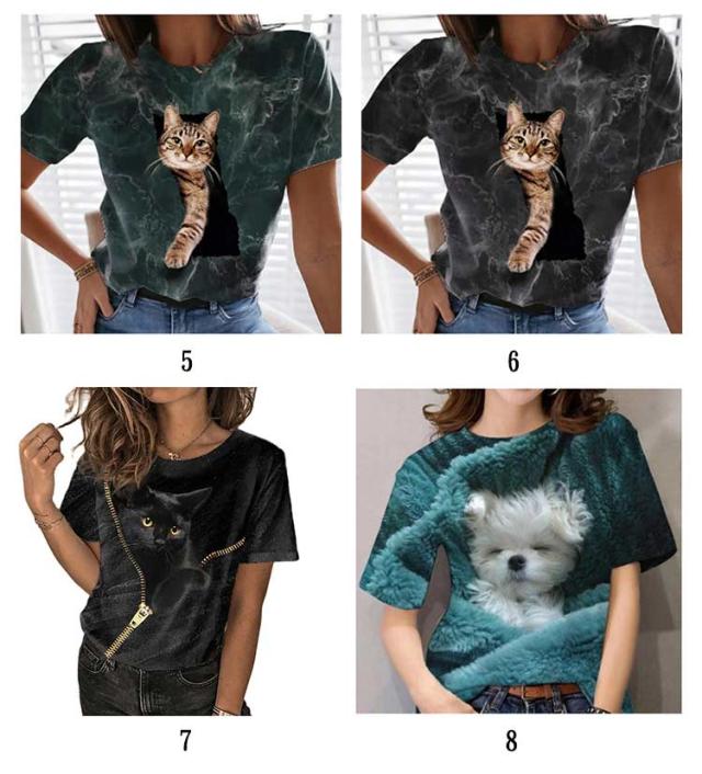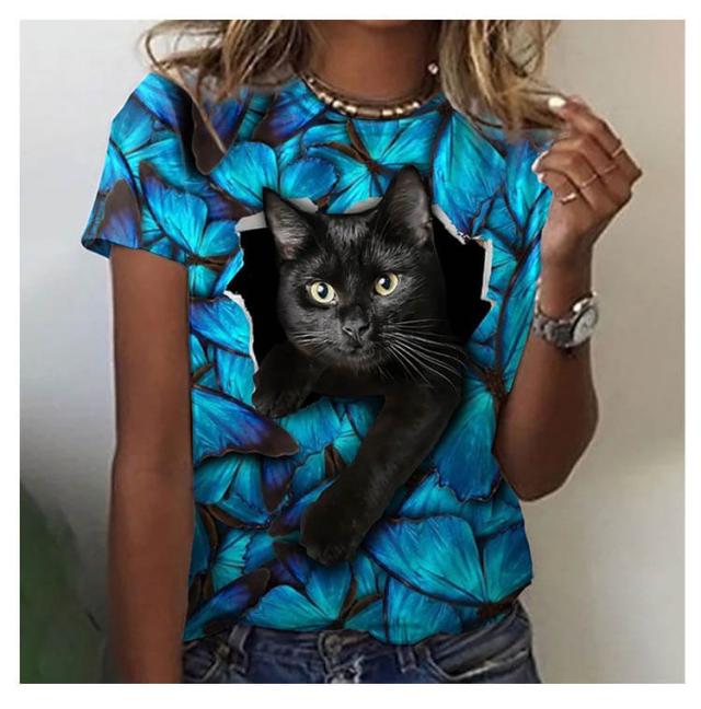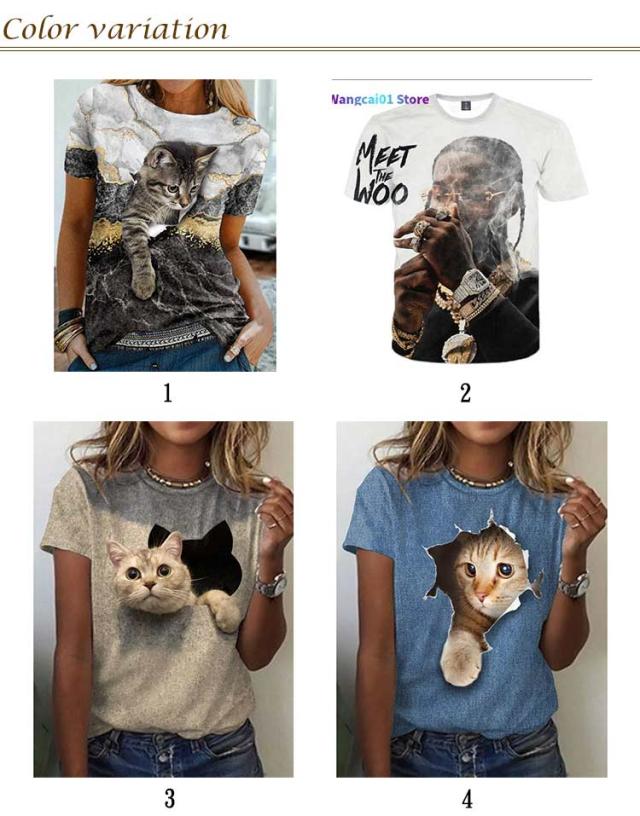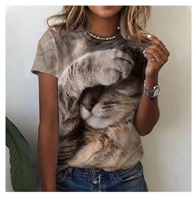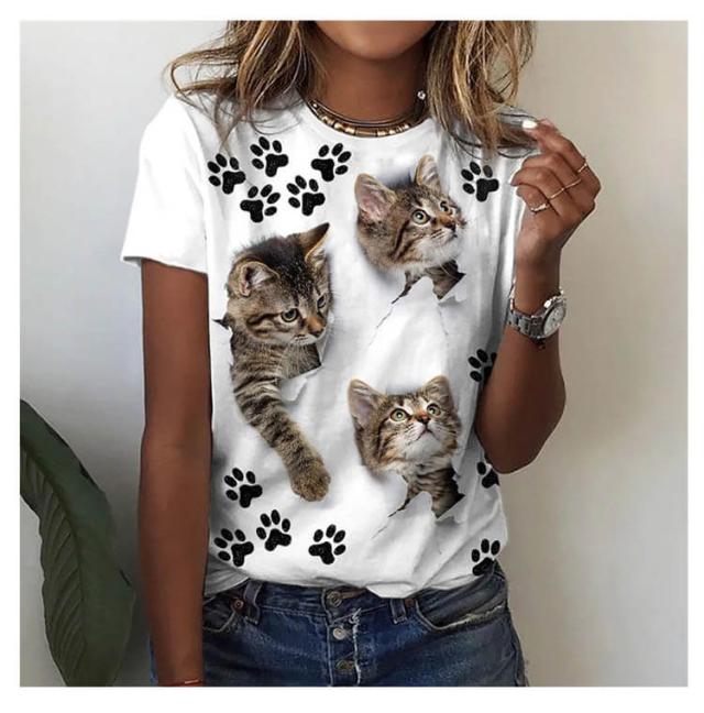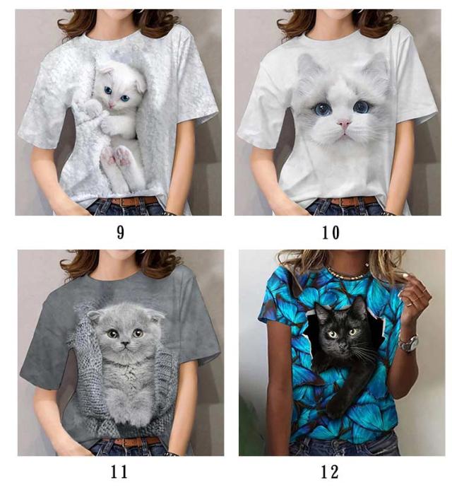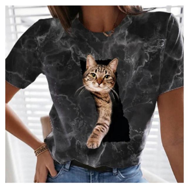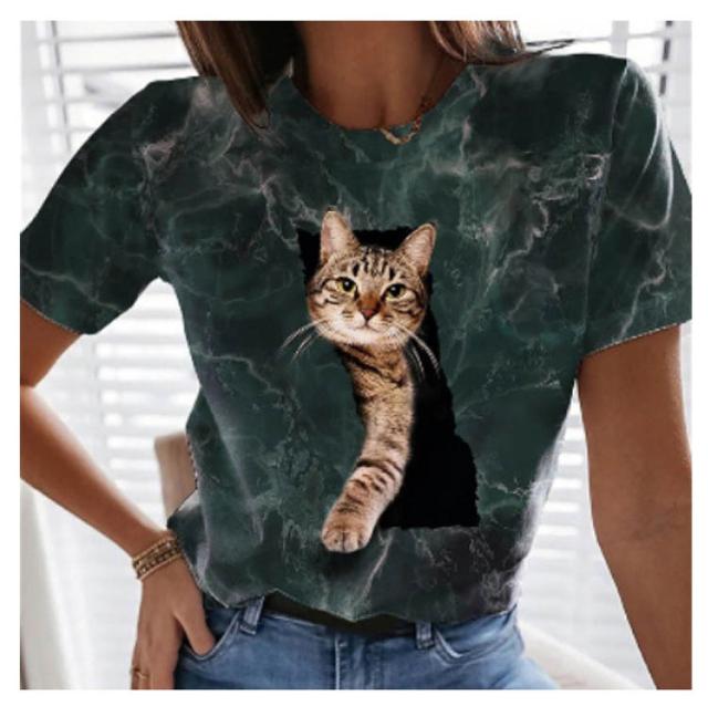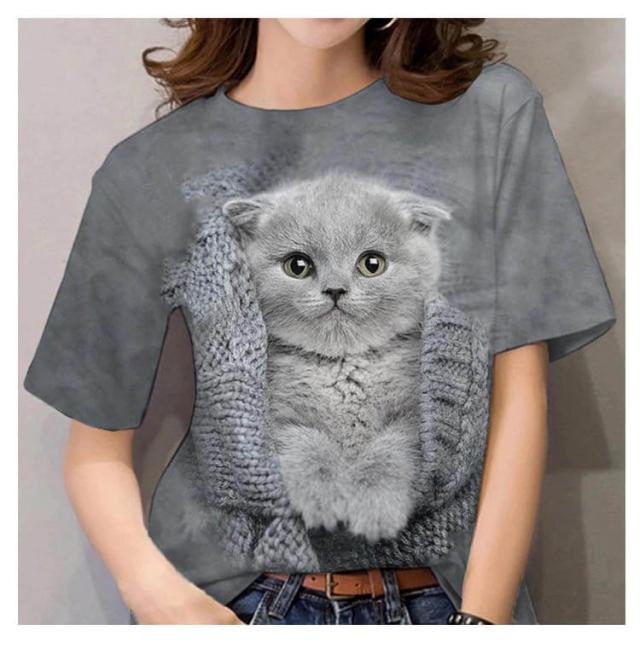 3D 猫プリントtシャツ 3D柄 カットソー レディース 半袖 3D Tシャツ おもしろ 面白 猫 tシャツ ねこ キャット にゃんこ ラウンドネック かわいい 夏 大きサイズ