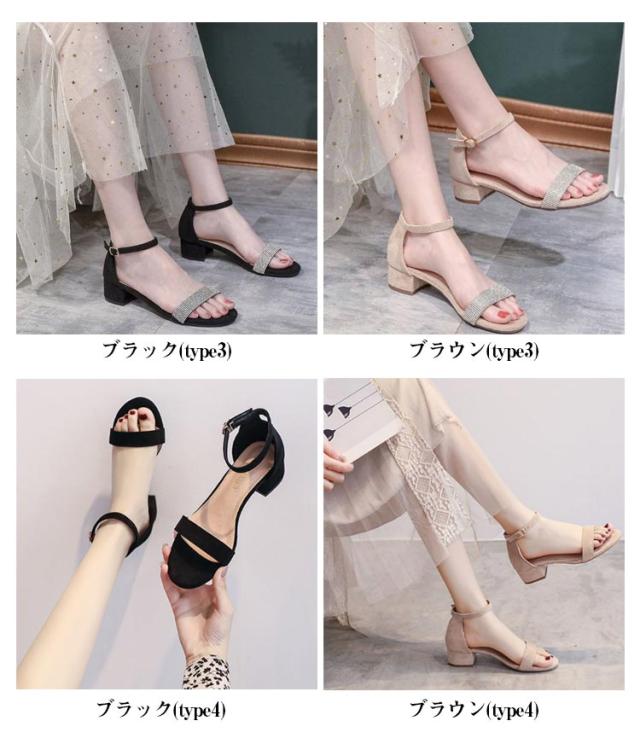 4type選べる!ストラップサンダル サンダル レディース ローヒール アンクルストラップ アンクル ストラップ かわいい 歩きやすい 旅行 疲れない かかと付き シンプル きれいめ ブラック ブラウン 送料無料