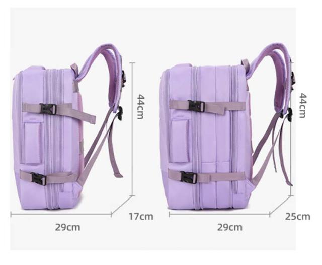 | サイズについての説明 | 持ち運び方法3way: ハンドバッグ/ショルダーバッグ/バックパック サイズ:高さ44cm×幅29cm×厚さ17~25cm(圧縮可能) 重量:0.82キロ 容量: 15.6インチノートパソコン、iPad ※サイズや重量は個体差により若干の誤差があります。 |