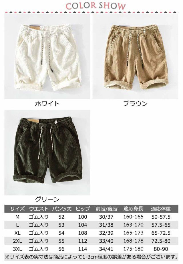 | 3colors×5size コーデュロイショートパンツ シンプルなのでどんなアイテムとも合わせやすく、夏にイチオシアイテム | |