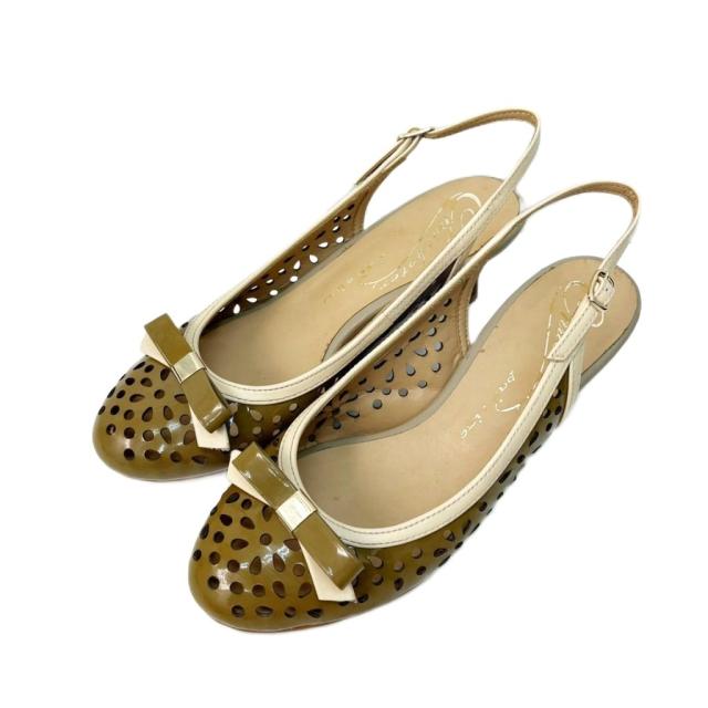 【中古】エイゾー EIZO エナメル サンダル リボン カットワーク バックストラップ カーキ系 23 レディース